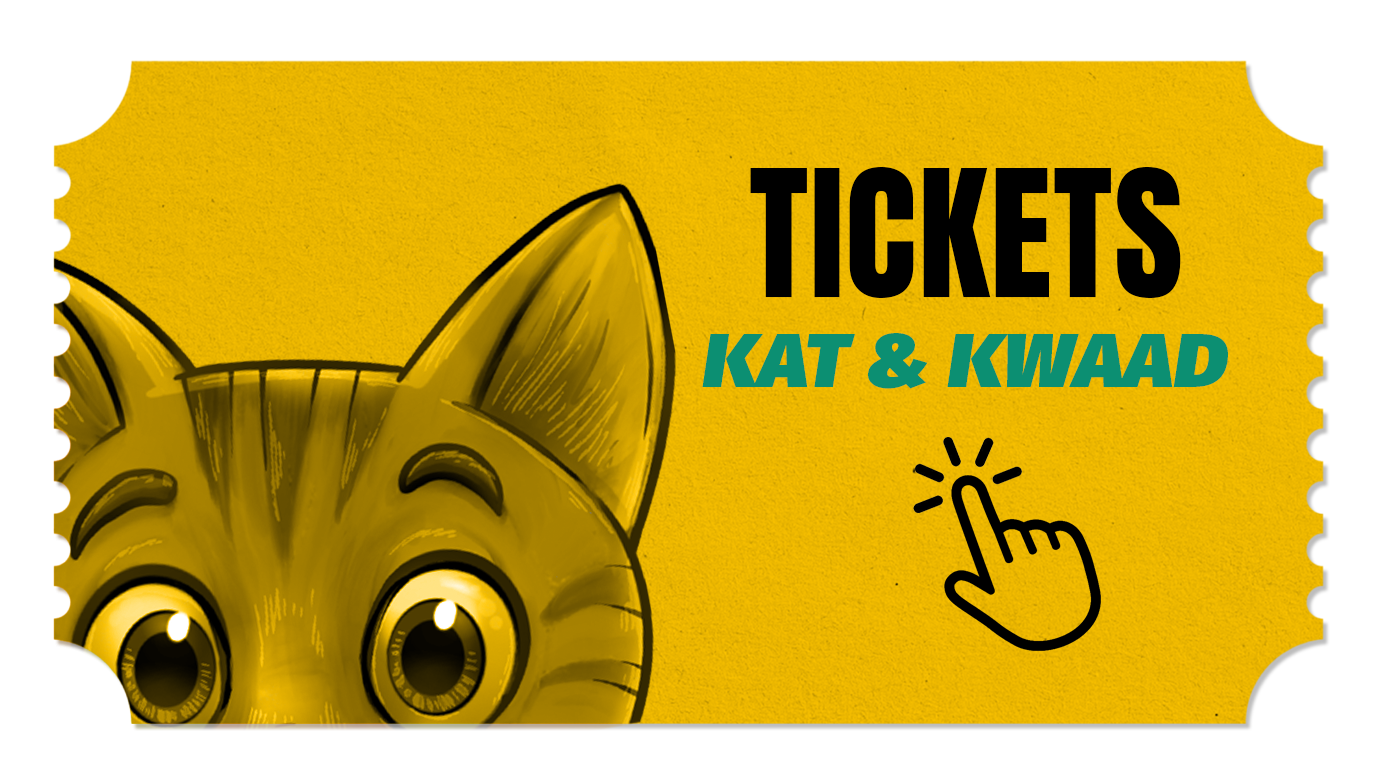 De kaartverkoop voor onze voorstelling KAT & KWAAD is van start gegaan. Wij maken hiervoor gebruik van een online ticketsysteem. Klik op het onderstaande ticket om naar ons online ticketsysteem te gaan en kaartjes te bestellen. In het ticketsysteem kies je de gewenste datum en vervolgens geef je aan hoeveel kaarten je wilt bestellen. Na de betaling per iDEAL of creditcard ontvang je de kaarten direct per e-mail. Deze moet je bij de entree kunnen tonen aangezien ze worden gescand. Je kunt ze thuis uitprinten of tonen op je smartphone.